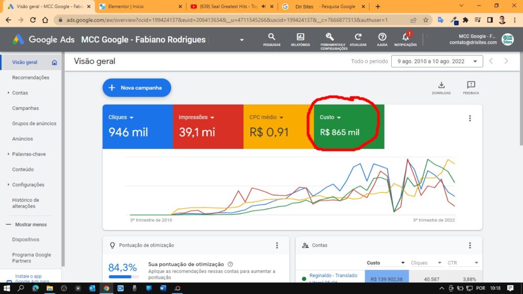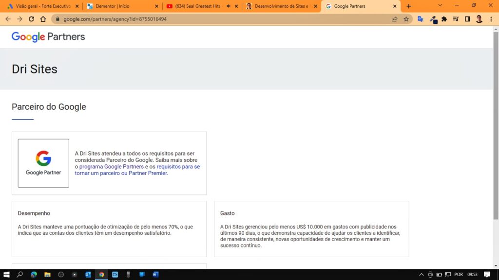 Hoje somos uma agência certificada pelo Google, já investimos quase um milhão de reais em anúncios para nossos clientes.
